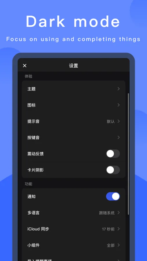 ·今日小部件:无需打开App,在通知中心快速查看,完成和创建您的项目;