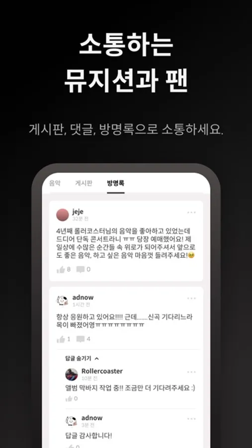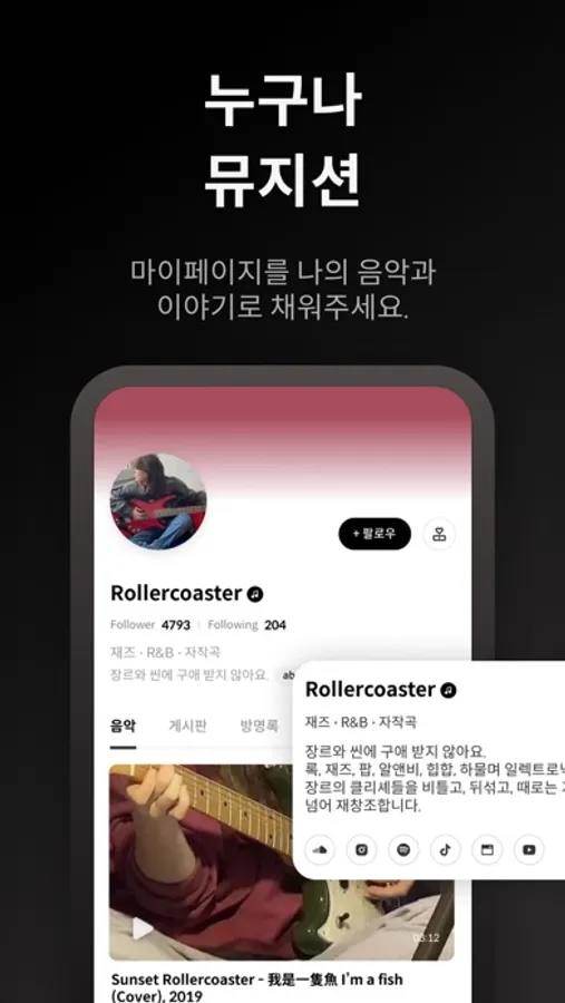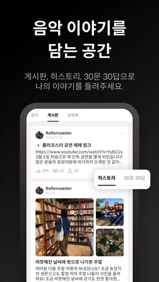 · 나와 음악 관심사가 비슷한 사람들과 함께 커뮤니티를 즐겨보세요!
