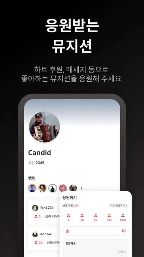 · 아티스트는 하트 후원을 통해 수익을 올릴 수 있어요.