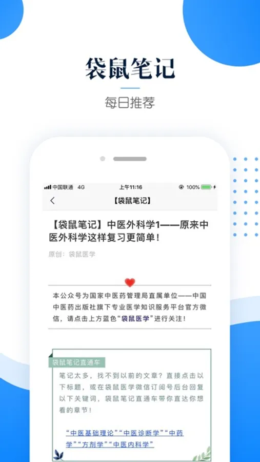 执医考试、中医考研、大咖直播、海量题库等,中医药知识尽在袋鼠医学APP。