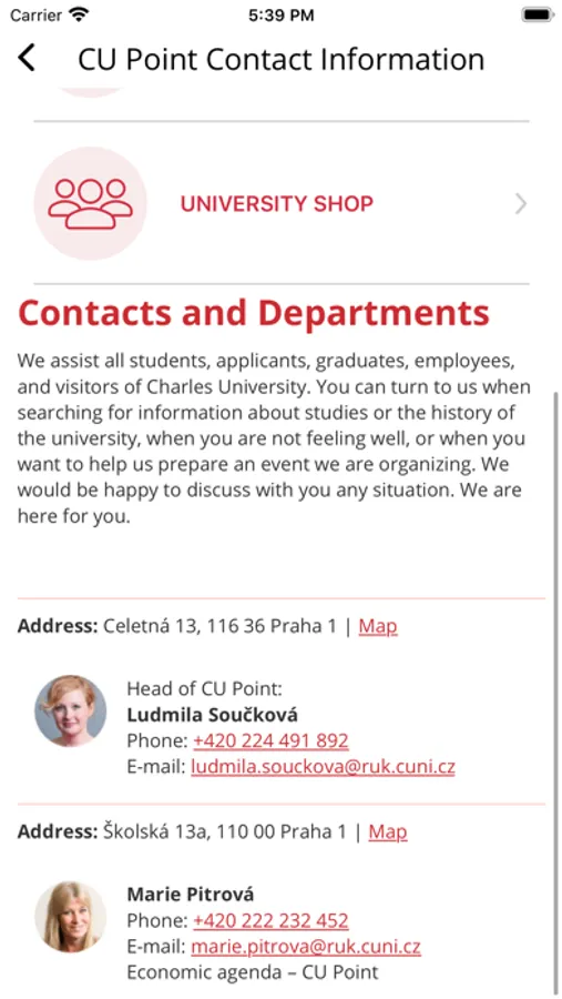 CU Point mobile application will help you quickly navigate the range of our services. It is intended for students, staff, graduates and applicants for study at Charles University. Available in Czech and English.