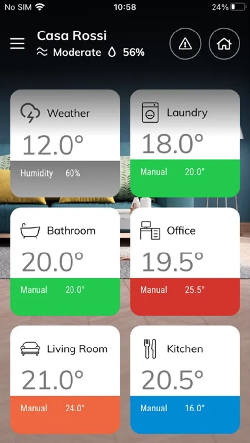Home / Away: it communicates to the system, if you want also via geolocation, that you are not at home, optimizing consumption.