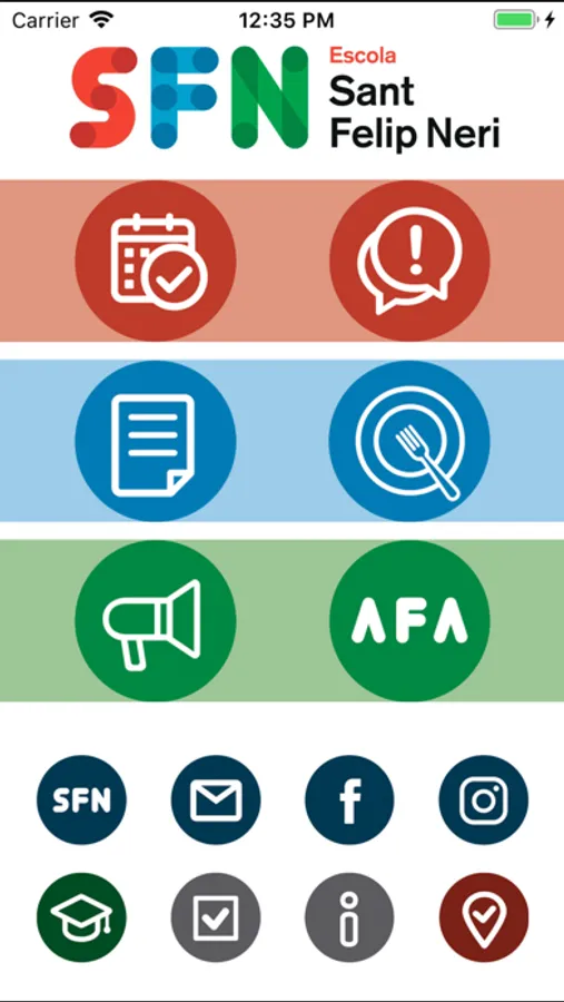 APP de l'Escola Sant Felip Neri de Barcelona. L'aplicació permet una comunicació directa entre el centre i els pares dels alumnes. Consta d'una primera pantalla de registre on s'identifica l'usuari. A continuació apareix un menú amb diverses opcions: secció de notificacions enviades per l'Escola -ja siguin comunicats generals o personalitzats-, web de l'Institut, agenda d'esdeveniments, documents, secció AMPA, secció Menjador. A la part inferior es mostren les seccions: alumnes, informació APP, twitter i accés professorat.