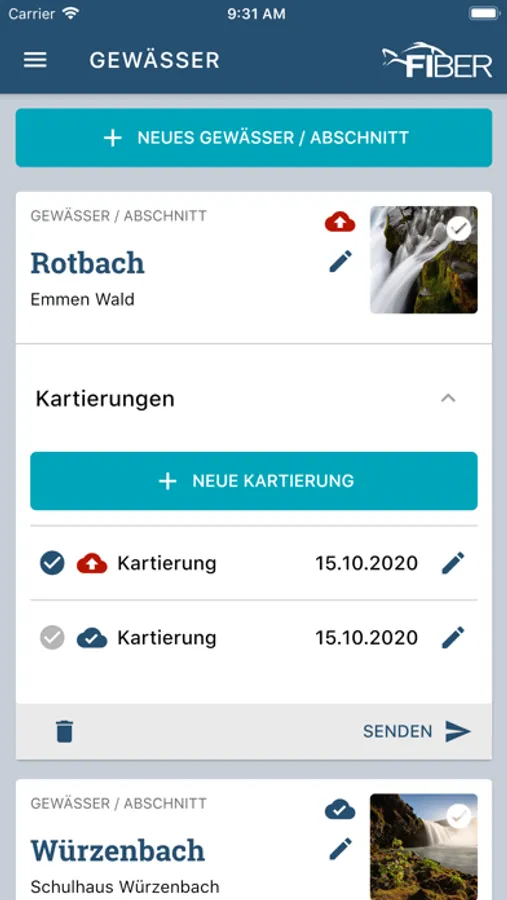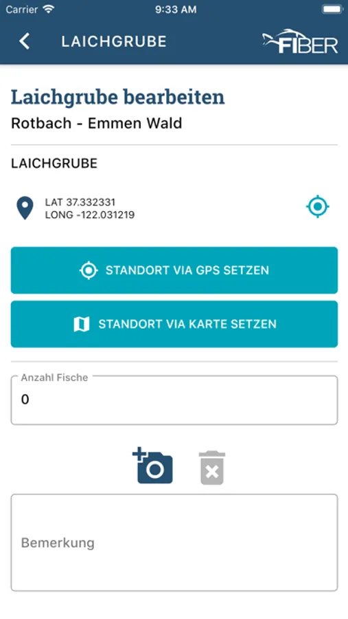 Es können Gewässer oder einzelne Gewässerabschnitte inklusive Fotos erfasst und jederzeit neue Kartierungen hinzugefügt (mit erfassen der GPS-Punkte, Foto- und Kommentarfunktion) oder vergangene Beobachtungen abgerufen werden – und mit ein paar wenigen «Klicks» wird die Kartierung als ZIP-Datei an die FIBER und sich selbst per Email versendet. Die FIBER hofft, dass damit noch mehr Fischer und Vereine motiviert werden, während der Schonzeit die Forellen im Auge zu behalten und die Beobachtungen zu melden.