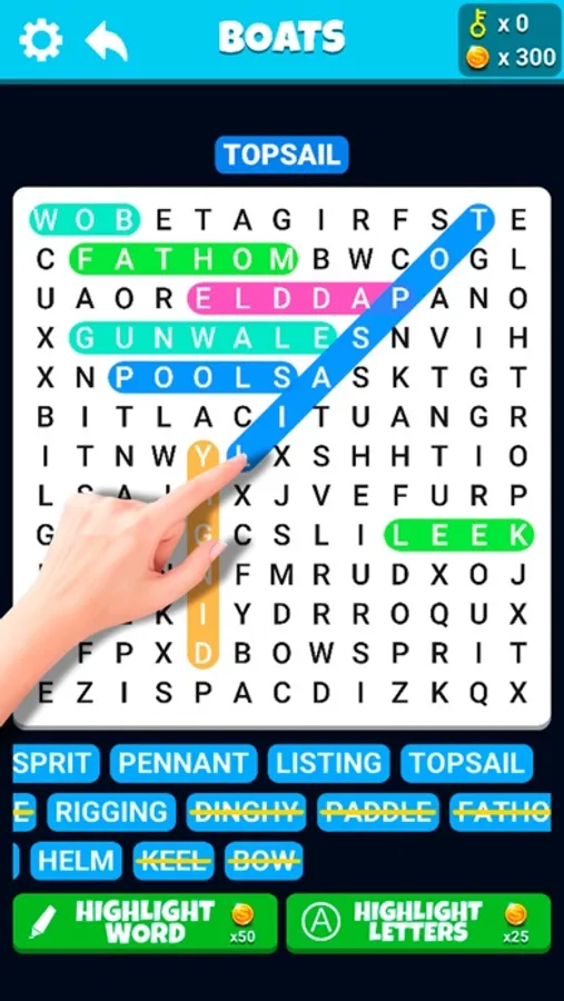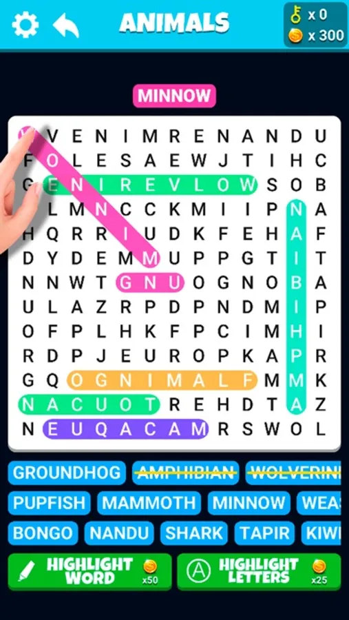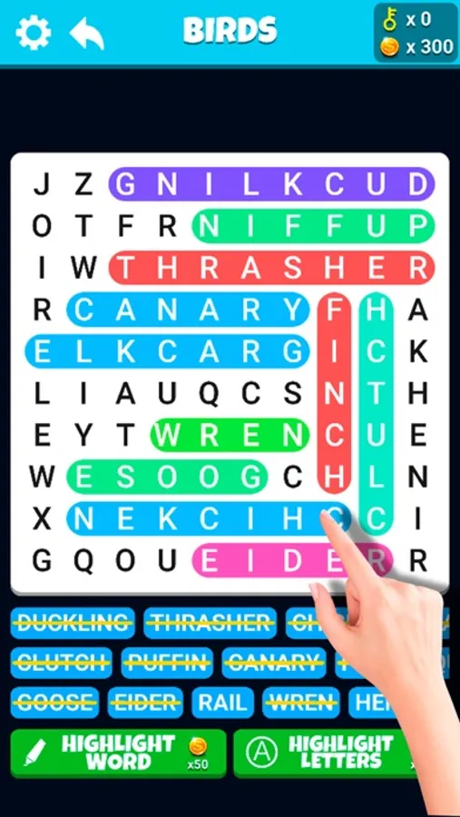 Identify the hidden words and then swipe up, down, left, right or diagonally to mark them.