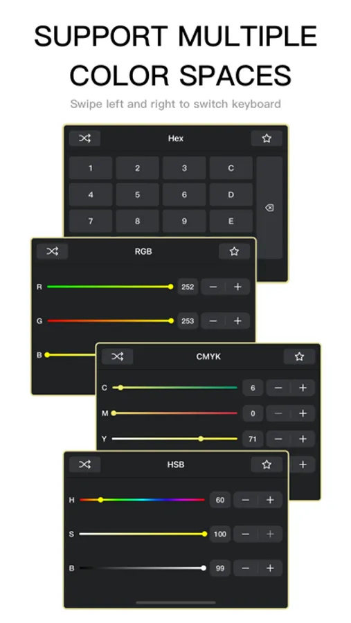 - Support Hex, RGB, HSB, CMYK input