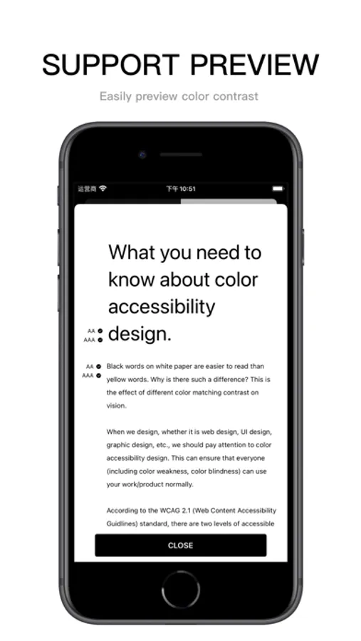 Contrast is a tool to measure the contrast between two colors, helping ensure your app meets the internationally recognized recommendations in the Accessibility Guidelines (e.g., WCAG 2.0 1.4.3).