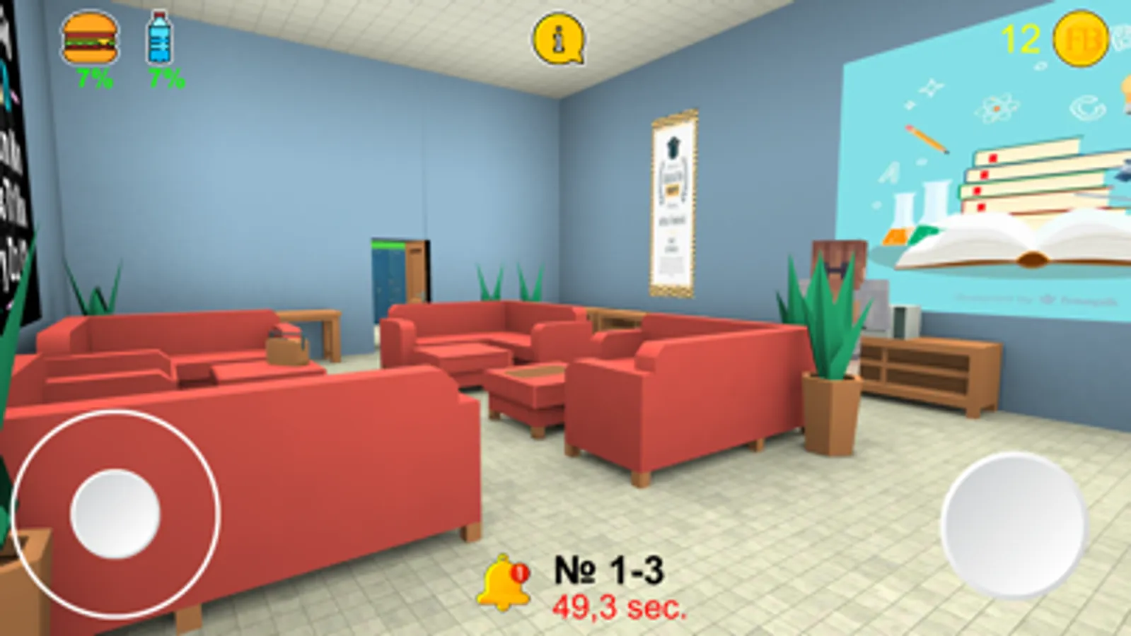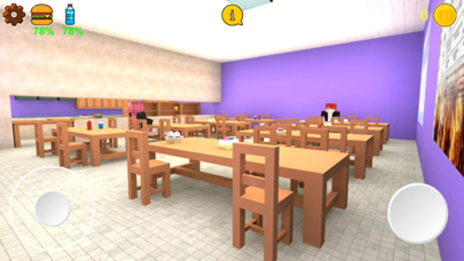 The game begins in the school neighborhood, just nearby your home. You should have no difficulty in getting to school. The school building itself is huge and consists of 4 floors. There are lots of classrooms and long corridors as well as a spacious cafeteria. A lot of students attend senior school. Being on duty here is quite a challenge!