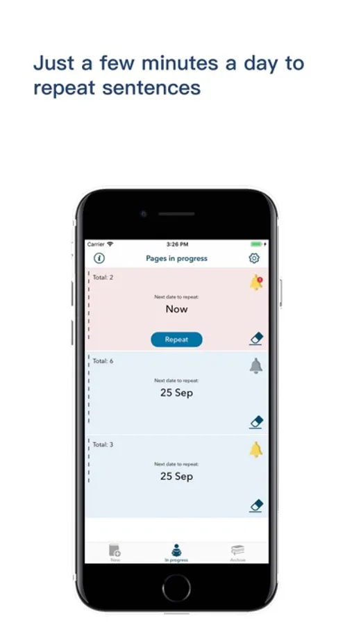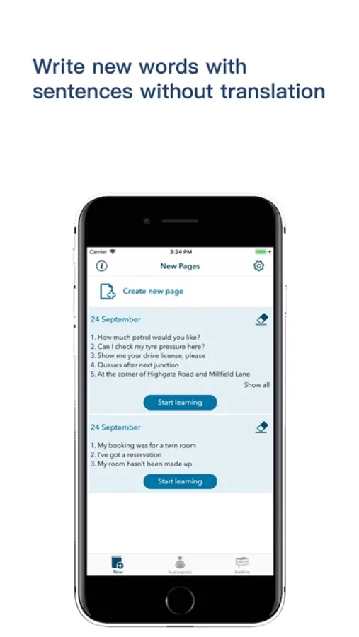 With RemindVocab, you can write down new words in context using pages. A unique algorithm for repeating sentences will allow the brain to remember all the words in about a month and never forget them.