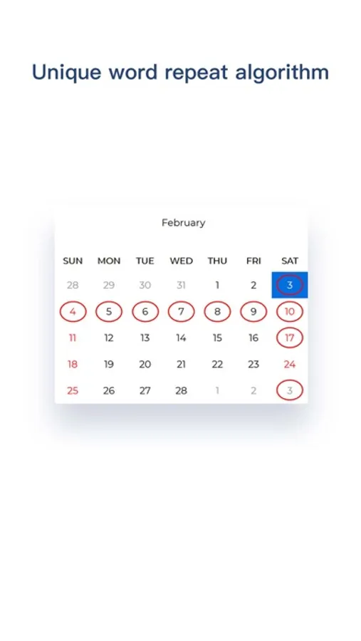 The purpose of the application is to expand your vocabulary. Set your goal in the form of a certain number of words and track it using the learning statistics.
