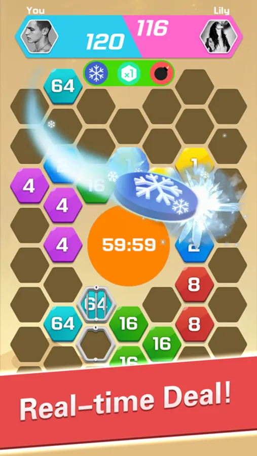 Huge board, more hexa blocks would drop at once. Even the largest Number 2048 won't disappear. More fun and challenge included in your happy playing.