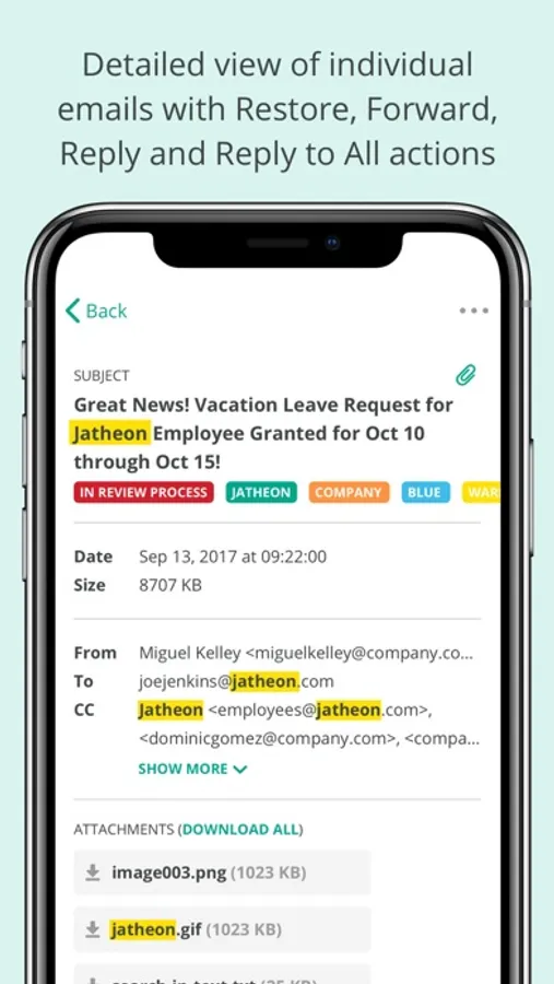 The Jatheon Archive mobile app allows users, compliance managers and administrators to access and search their email using a variety of search criteria. The app can work with both Jatheon Cloud and Jatheon cCore.