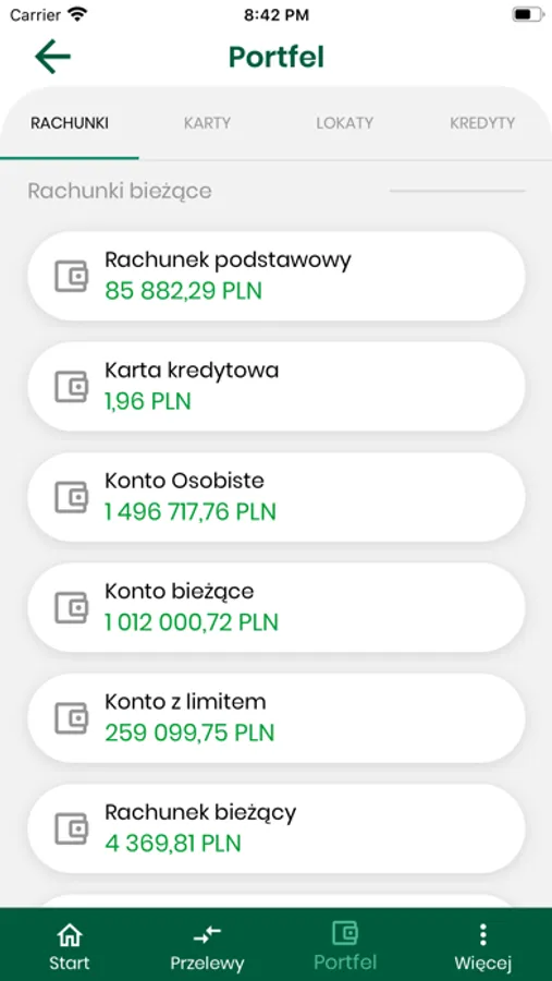 - prezentowanie rachunków, kart, lokat i kredytów klienta,
