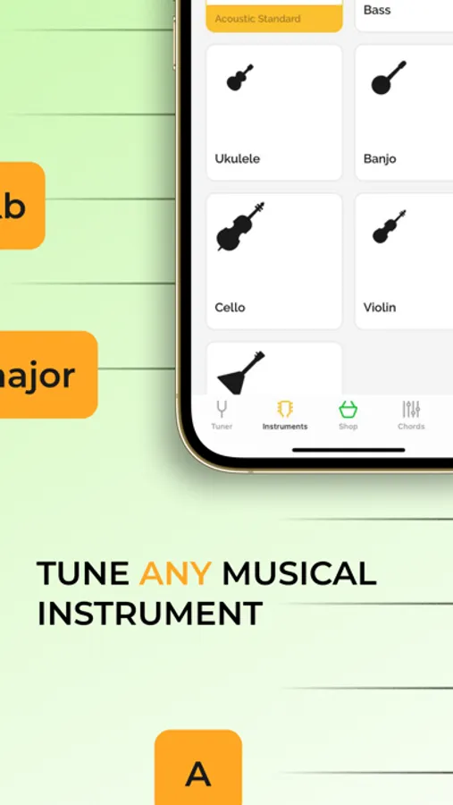 ••• Our tuner is not only a high-precision guitar tuner, but also a tool for musicians, which contains a large number of original tunes for various musical instruments, as well as a library of chords for studying directly from the app •••