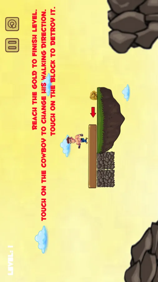 Help the cowboy find the gold. Overcome difficulties and find a way to the treasure.