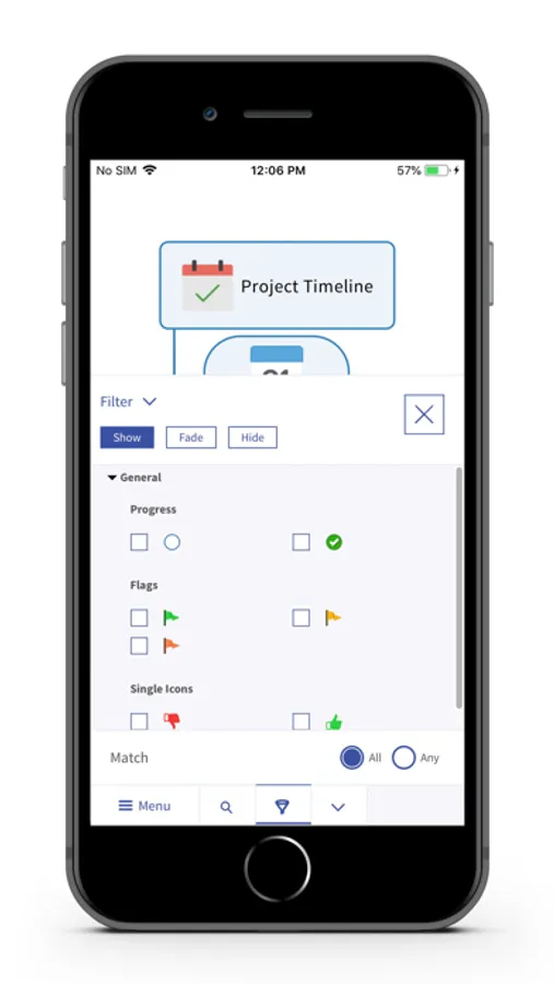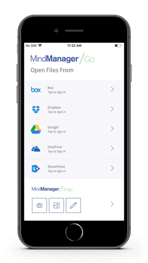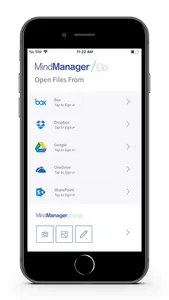 MindManager Go lets you view and navigate your MindManager files on your mobile device. See map details with crystal clarity, focus on important information with ease thanks to powerful filtering and search capabilities, and send images and text notes to your MindManager desktop with the NEW MindManager Snap capture tool. Supports classic and recent MindManager features including task information, properties, formulas, SmartRules, objects, flowcharts and more.