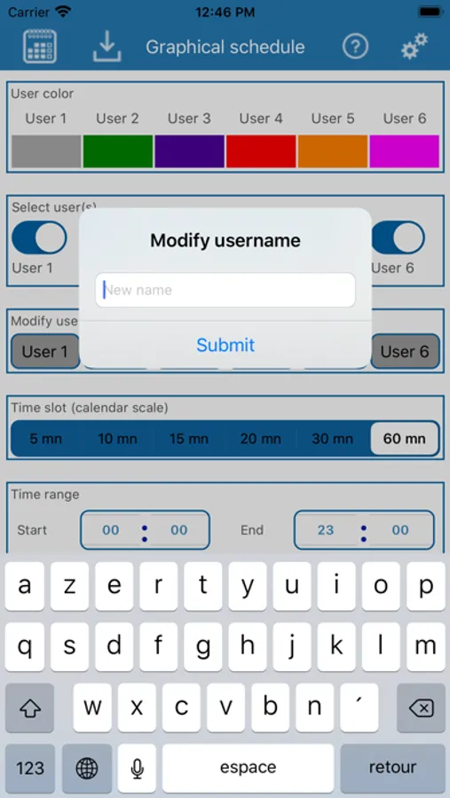 DynamicSlot is a graphical calendar application. It enables you to graphically prepare the schedule of your kids or adults by moving boxes on a grid with two axes: the time and the number of people from whom you need to synchronize agenda.