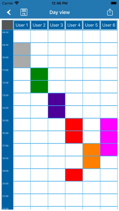 With DynamicSlot you assign a box color to each individual and you can move these boxes around on the time scale in order to have a fast and visual results of your planning. You can quickly see if you will have enough time to jump from one activity to the other and where are the bottlenecks.
