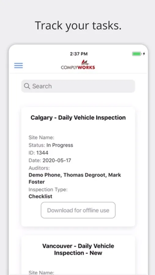 Access your ComplyWorks account while on the move to track and assign tasks such as audits, inspections and corrective actions. If you've been assigned a task, you can use ComplyWorks to track the completion of any assigned items.