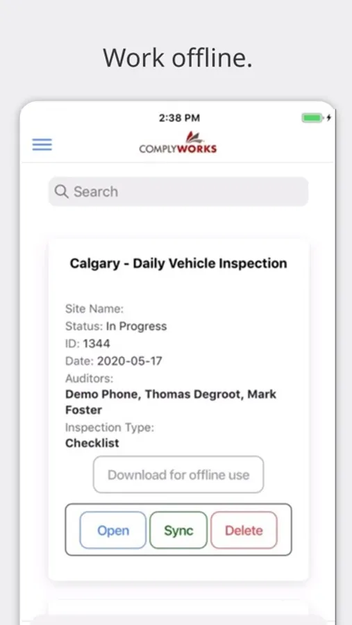 No internet – no problem. ComplyWorks allows you to complete tasks, then it automatically uploads completed items once you are reconnected to a network or Wi-Fi.
