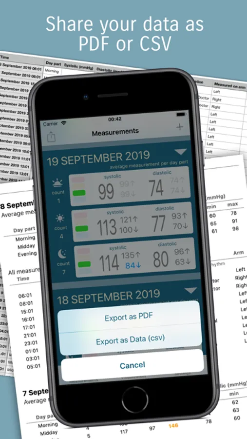 Sharing your data with your family doctor or physician is now easy with the PDF and CSV (for in a spreadsheet) exports.