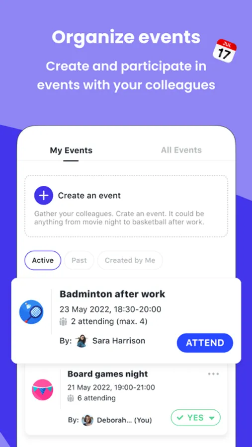 Hey, join the office competition, get to know your coworkers better and never miss an exciting event.