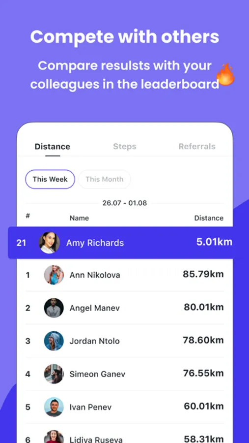 The platform allows you to always be notified about company events by your HR while providing a fun space where you can engage in friendly competitions with colleagues. You can take charge and create your event, where people with similar interests can join and inspire each other to be active.