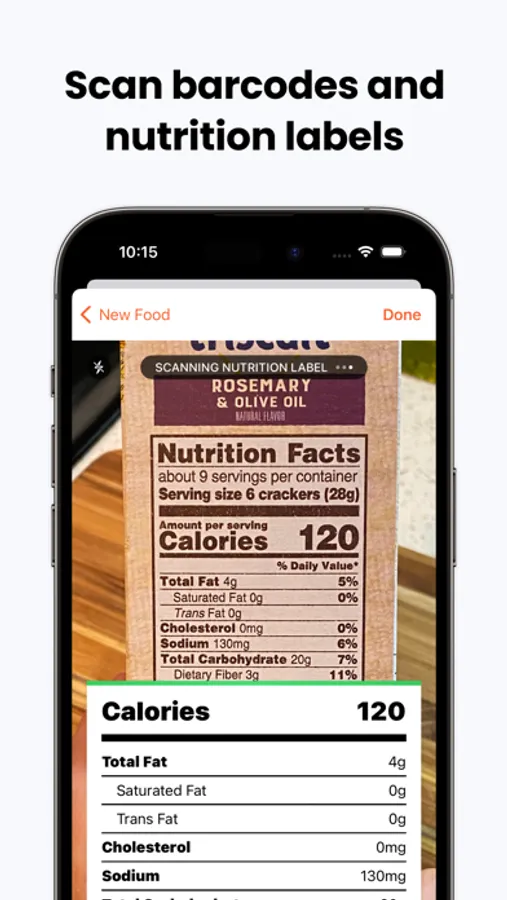 • Quickly scan nutrition labels to quickly log accurate data for packaged foods