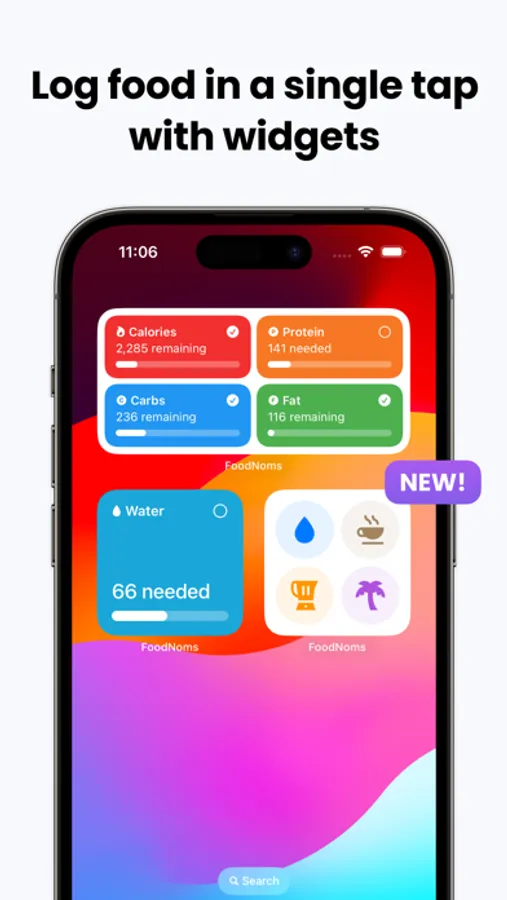 • FoodNoms Plus - log drinks; track water, sodium, fiber, net carbs, caffeine, alcohol, and more; create custom meal types; Ask AI; save commonly-eaten items as favorites; import nutrition data from Health; view more stats and charts; track intermittent fasts; plus other exclusive features
