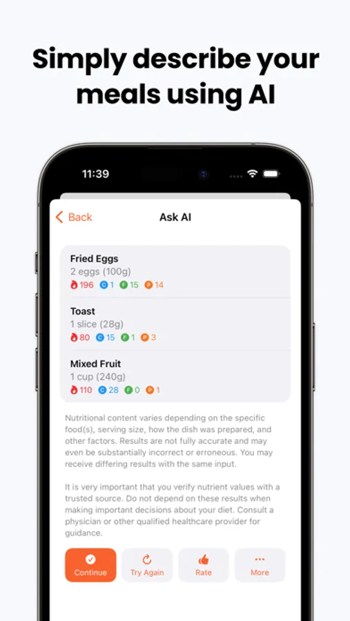 • Save time using Smart Suggestions, which recommends foods to log based on your food habits