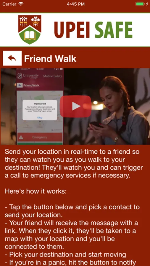- Safety Notifications: Receive instant notifications and instructions from UPEI safety when on-campus emergencies occur.