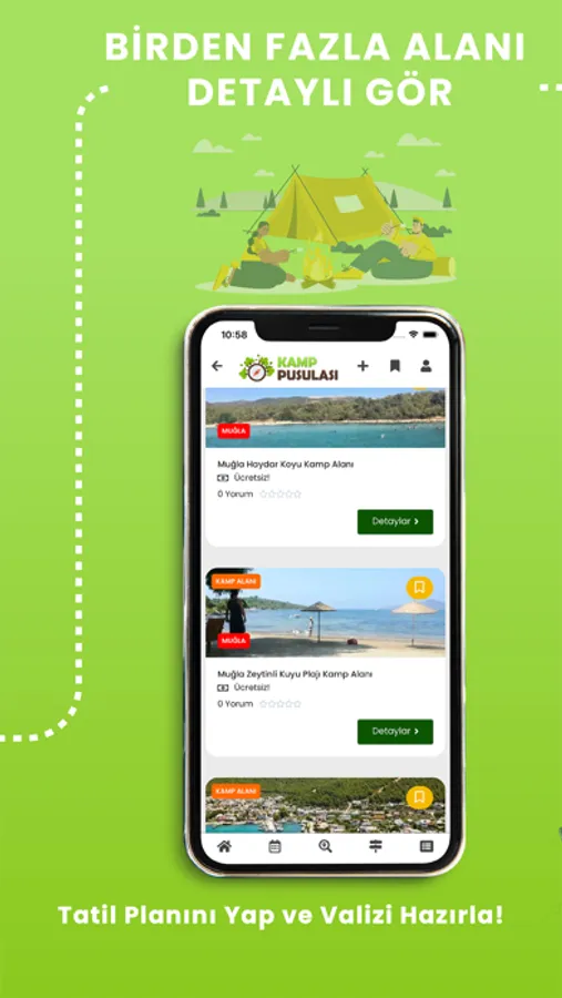 The Kamp Pusulasi application, which you should definitely check out before or while on the road, has a database that grows with user feedback and constantly updated content. So, what can you benefit from when making travel plans or as a travel companion? You can review the previously commented locations by travelers, access detailed information from the places on your route and save time. Our application is a guide where you can easily access up-to-date information on the place you want to go, manage your vacation time in a quality way and make your vacation more enjoyable.