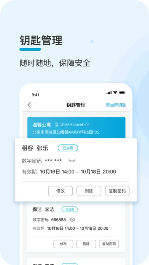2. 【房屋】管理模块,可实现房屋的创建、修改、删除及钥匙管理等操作。