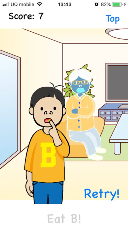 This is a simple game app. Just you can play a game and see highest score. Here there is a boy, who is a booger eater (b-eater) and behind him, his father is reading news paper. But sometimes he checks whether his son is eating booger or not. If the boy get caught while eating booger, the game ends.