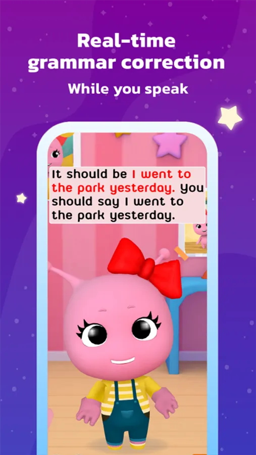 Welcome to Galaxy Kids English! The world's first AI-powered English language learning app for kids ages 3-8 years old that provides free-flowing conversation and real-time grammar correction!