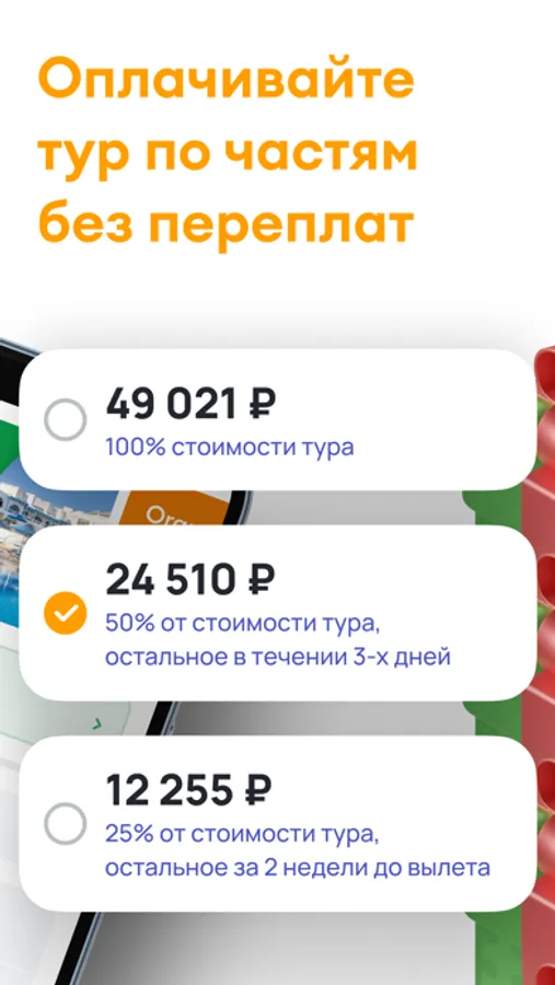 - Possibility of partial payment - first installment 10-50% of the price, the rest a couple of weeks before departure.