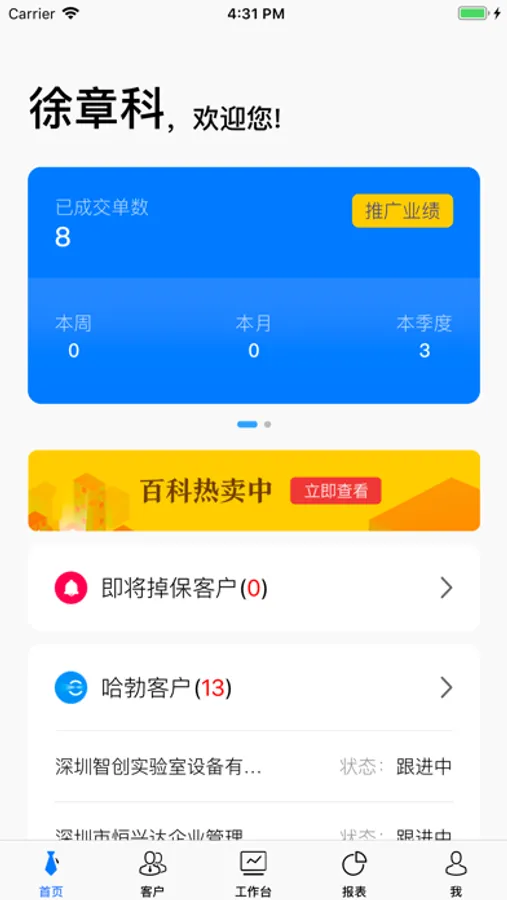 随时可以查看负责的客户资料情况,方便联系客户查看数据;