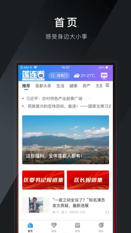 莲连看——莲连看APP是一个集资讯、生活、服务为一体的综合性APP。用户在APP上既可以看到本地资讯,包括推荐、学习、视听、直播、短视频等栏目,获取莲都第一手资讯,还能够参与互动,根据地图索引乡镇街道最新新闻资讯。致力于打造一个属于莲都区人民自己的综合服务平台。