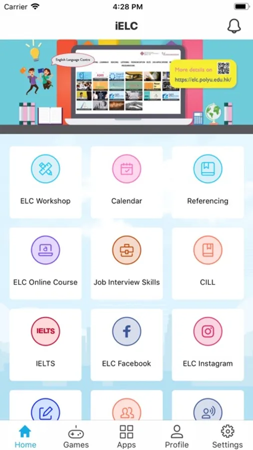 The official mobile app of the English Language Centre, (ELC), The Hong Kong Polytechnic University, is designed to provide personalised information and services to help students make them most of their studies at the ELC.