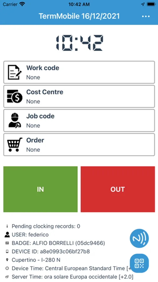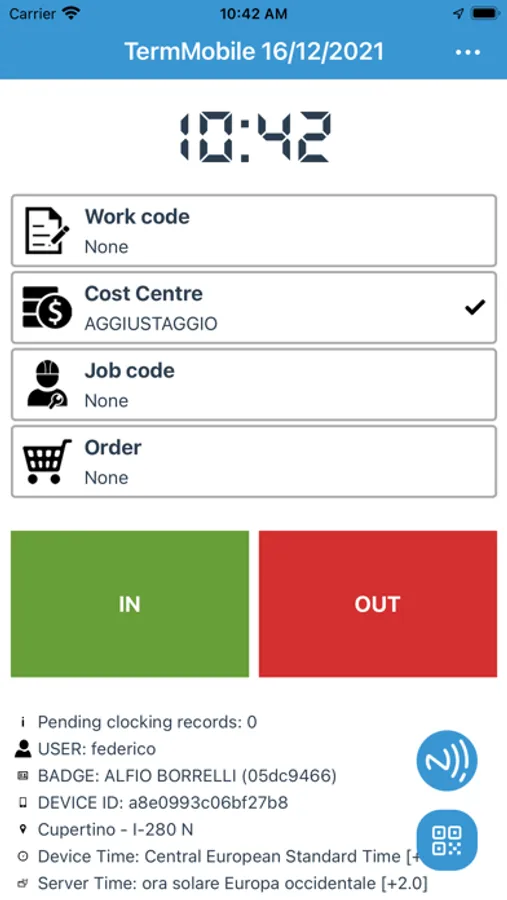 It can be used both by a single worker (in this case, it is the device that identifies the employee) as well as by an administrator or boss (who reads the NFC tag or the QR code that identifies the employee).