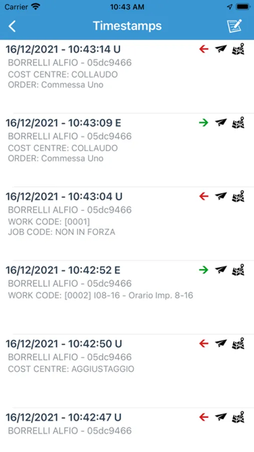 All the clockings get registered, even in the absence of data connection, and then sent to the central server when a connection is available.