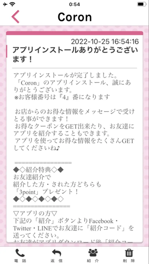 CoronのアプリをSNSを通じてお友達に紹介する事ができます。