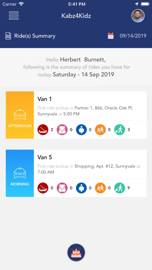 Kabz4Kidz Driver app is Mobile app for Drivers to manage their rides for the day. This app removes all paper work and makes life easy for Drivers to efficiently manage their time. Ride changes are seamlessly communicated to them from Dispatcher, Vehicle inspection, kids attendance can be captured seamlessly. No confusion on next pick-up or drop-off, app provides accurate ride schedule information and status to Drivers
