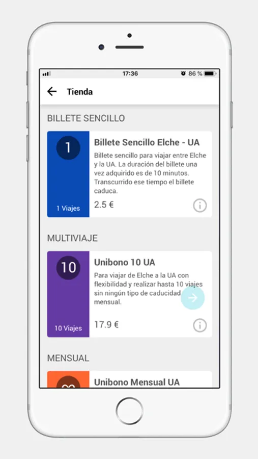 El proceso es sencillo, rápido e inmediato, una vez registrado el usuario ya puede operar con la aplicación. Si la opción elegida es la compra virtual, la adquisición del bono o billete también es inmediata. Recuerda que para poder viajar es necesario que una vez comprado el billete o bono, se genere además un ticket virtual (salvo en billetes sencillos que es automático) que será el que te permitirá el acceso al vehículo. Este se hará a demanda y siempre cuando el acceso al autobús sea inminente para evitar la caducidad y pérdida del mismo.