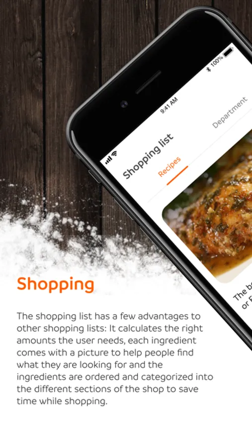 The shopping list has a few advantages to other shopping lists: It calculates the right amounts the user needs, each ingredient comes with a picture to help people find what they are looking for and the ingredients are ordered and categorized into the different sections of the shop to save time while shopping.