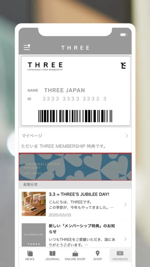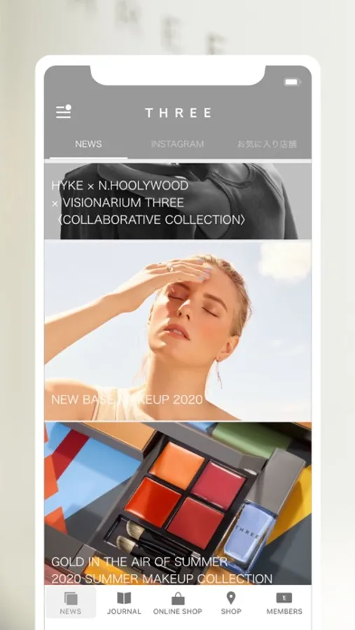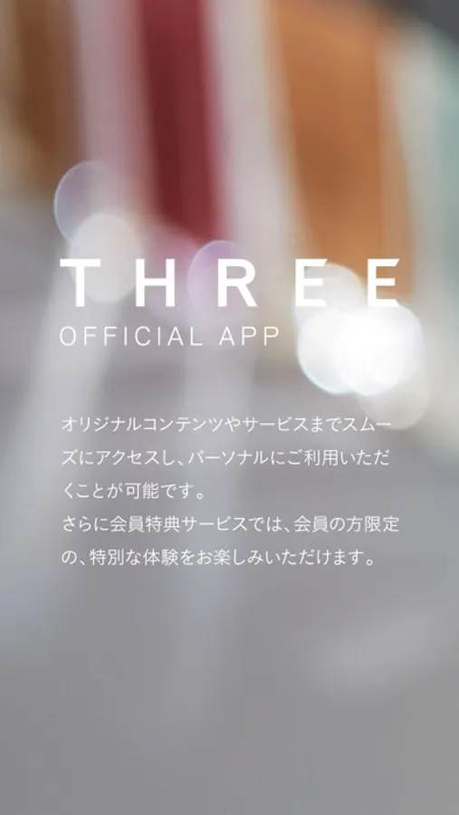 THREE 公式アプリでは、THREEのオリジナルコンテンツやサービスにスムーズにアクセス、パーソナルにご利用いただくことが可能です。さらに会員特典サービスをご用意しておりますので、会員の方限定の特別な体験をお楽しみいただけます。