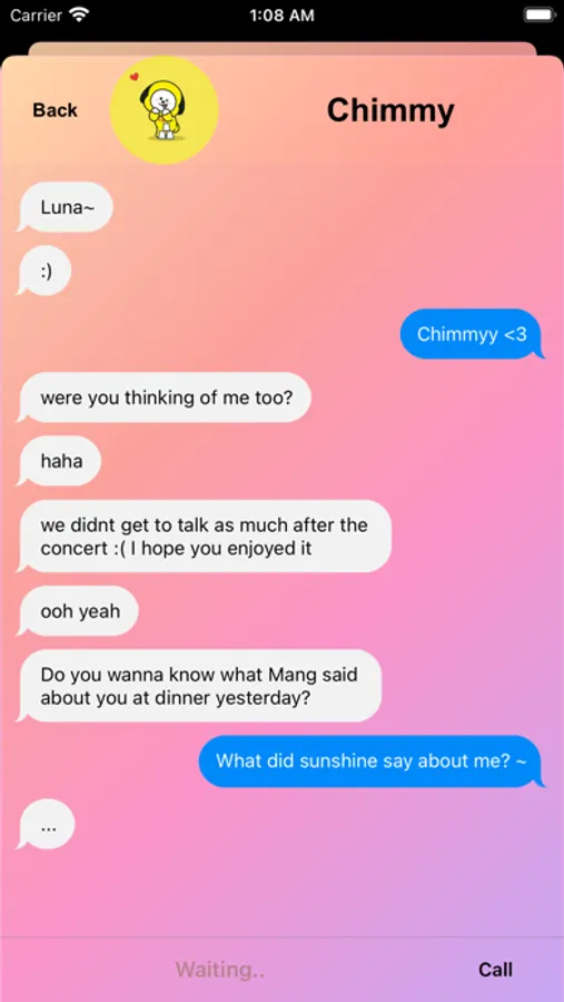 Fake B.T.S Text And Call is a fantasy role-playing game! Talk to any of the members and they will talk with you back. Select among many different chat options to choose between various story lines. Call each member to hear them talk to you. Features: