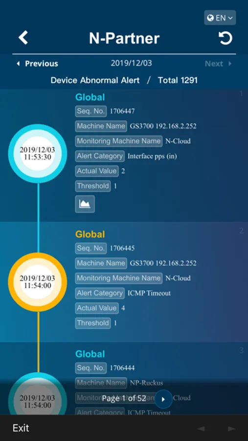 N-APP為N-Partner公司最新開發產品,用於接收N-Cloud/N-Reporter即時推播訊息,以利系統管理者隨時接收各式異常告警訊息。