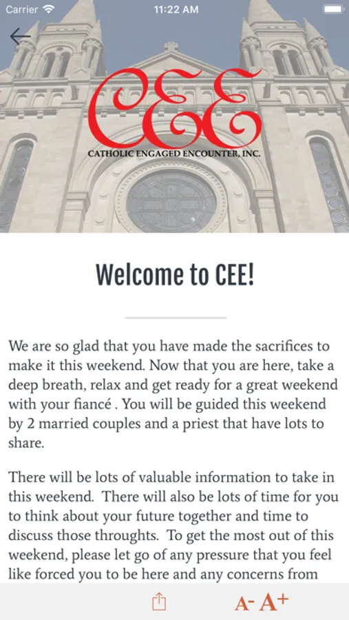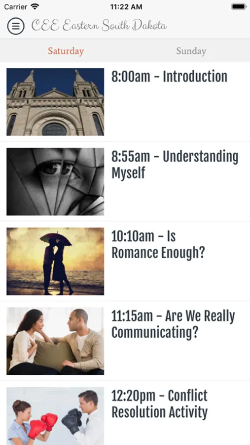 This is an app to help with the flow of the Catholic Engaged Encounter Weekend in Eastern South Dakota for Engaged Couples. There are many resources for the couples to fully enjoy the weekend.