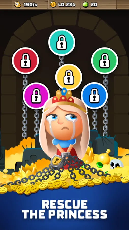 Manage your kingdom, fight with brave knights and epic heroes to rescue the princess and become the greatest Idle King Tycoon of the world.